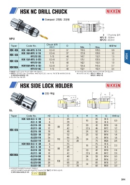 ★ NPU8 Type은 Center Throuth 대응이 되지 않습니다. ★ HSK NC용 Drill Chuck에는 Wrench가 부속되어 있지 않습니다.