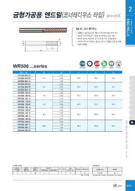 WR506 120 03 0.30 38.0 150.0 20.0 금형가공용(코너래디우스 타입) 엔드밀 - 위너 시리즈